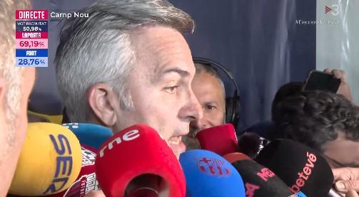 在拉波尔塔连任巴萨主席后,另一位竞选人丰特在竞选失败后接受了多家西媒的采访。对今天的选举结果怎么看?我先简单说几句,如果后面大家还有问题,我们再慢慢聊。首先,我要祝贺胡安-拉波尔塔当选主席。他在今天的投票中取得了非常明确的胜利。其次,我也要感谢今天参与投票的四万多名会员。大家的积极参与再次向世界证明,巴塞罗那是一家非常特别的俱乐部,我们依然有这样的幸运——由...